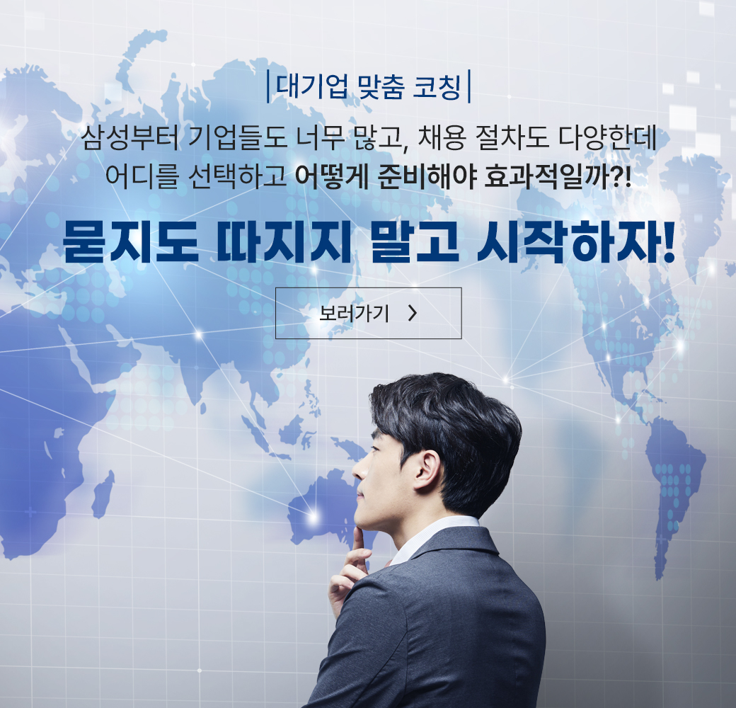 대기업, 공기업, 금융권, 외국계기업, 중견/강소기업에서 다년간의 경험과 전문성을 갖춘 전문가들로 1:1 맞춤 코칭 진행